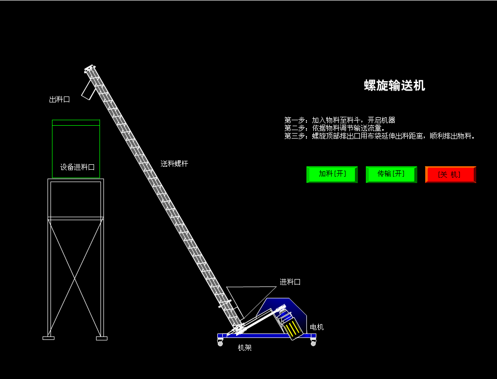 該機(jī)是利用電機(jī)帶動(dòng)螺旋回轉(zhuǎn),推動(dòng)物料以實(shí)現(xiàn)輸送的機(jī)械。