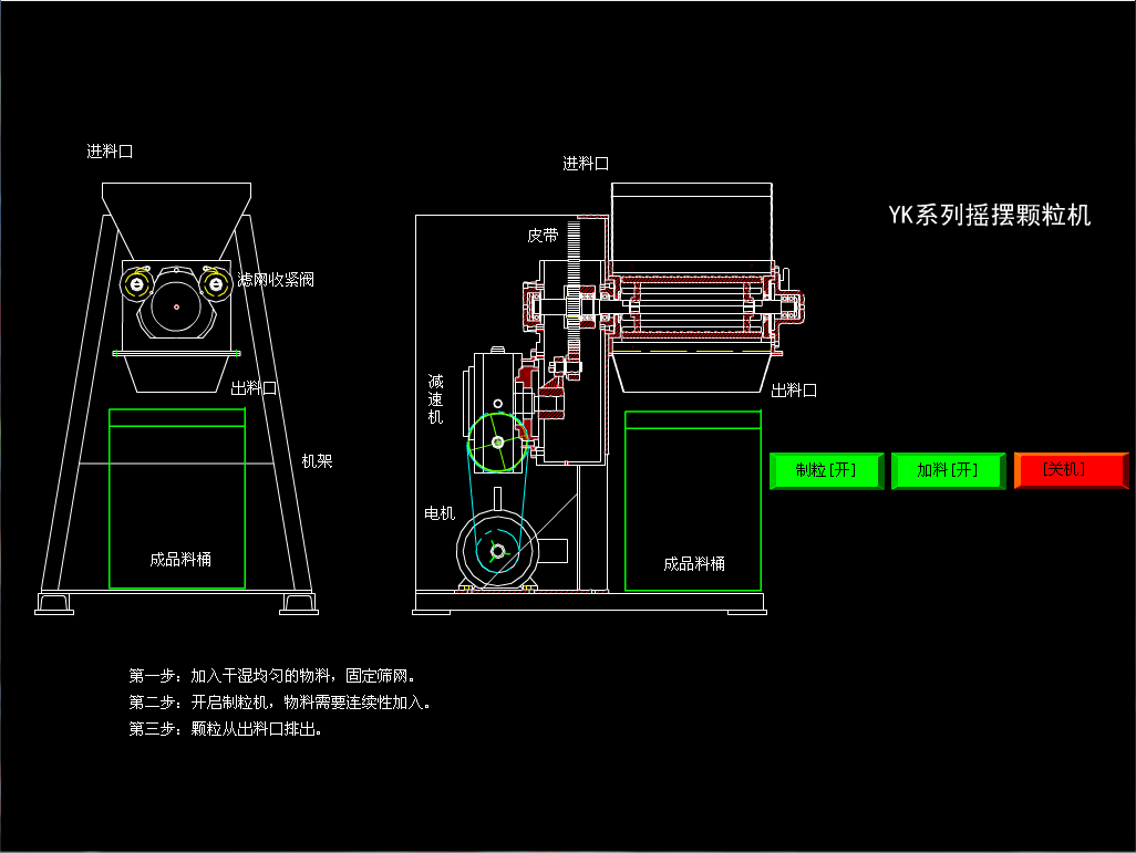 通過機械傳動使?jié)L筒往復(fù)擺動,將物料從篩網(wǎng)中擠出制成顆粒或粉碎制粒。