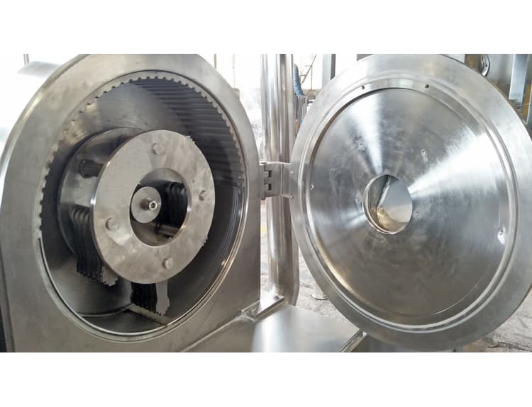 本機屬高速運轉(zhuǎn)機械,采用錘片式刀片,刀片可兩面更換使用,被粉碎物料經(jīng)高速刀片剪切獲得粉碎。該機還可根據(jù)不同物料選用各種形狀及尺寸不同的刀片,粒度大小通過更換篩網(wǎng)獲得。